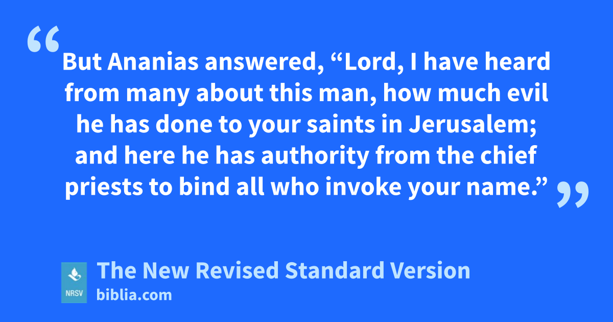 But Ananias answered, “Lord, I have heard from many about this man, how much evil he has done to your saints in Jerusalem; and here he has authority from the chief priests to bind all who invoke your name.”