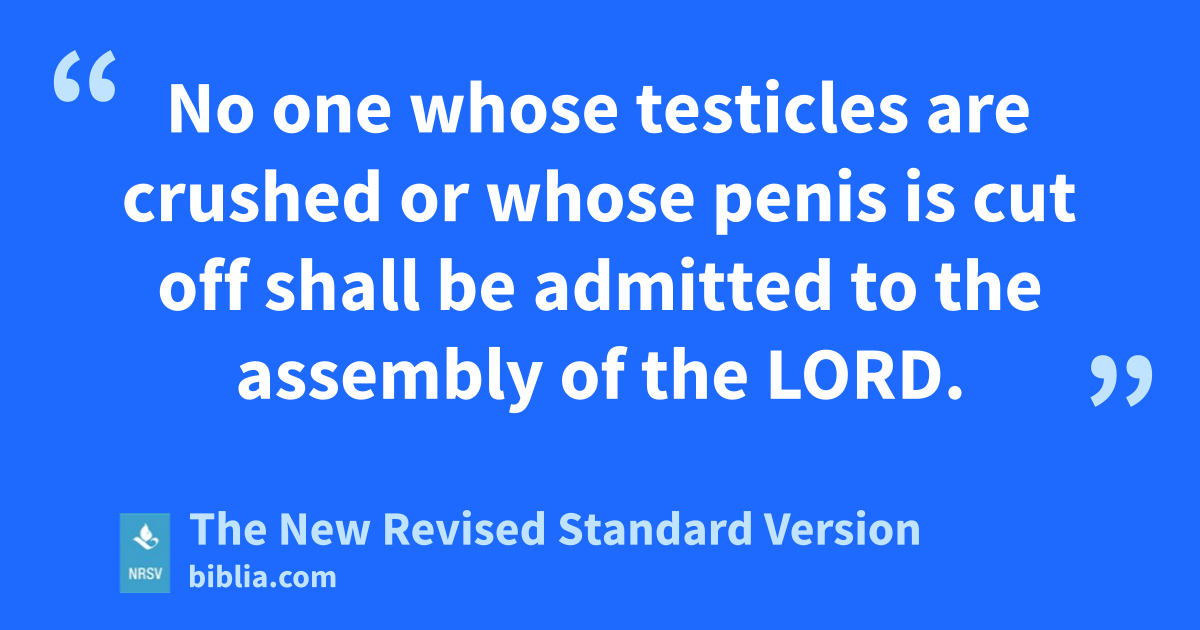 No one whose testicles are crushed or whose penis is cut off shall be admitted to the assembly of the LORD.