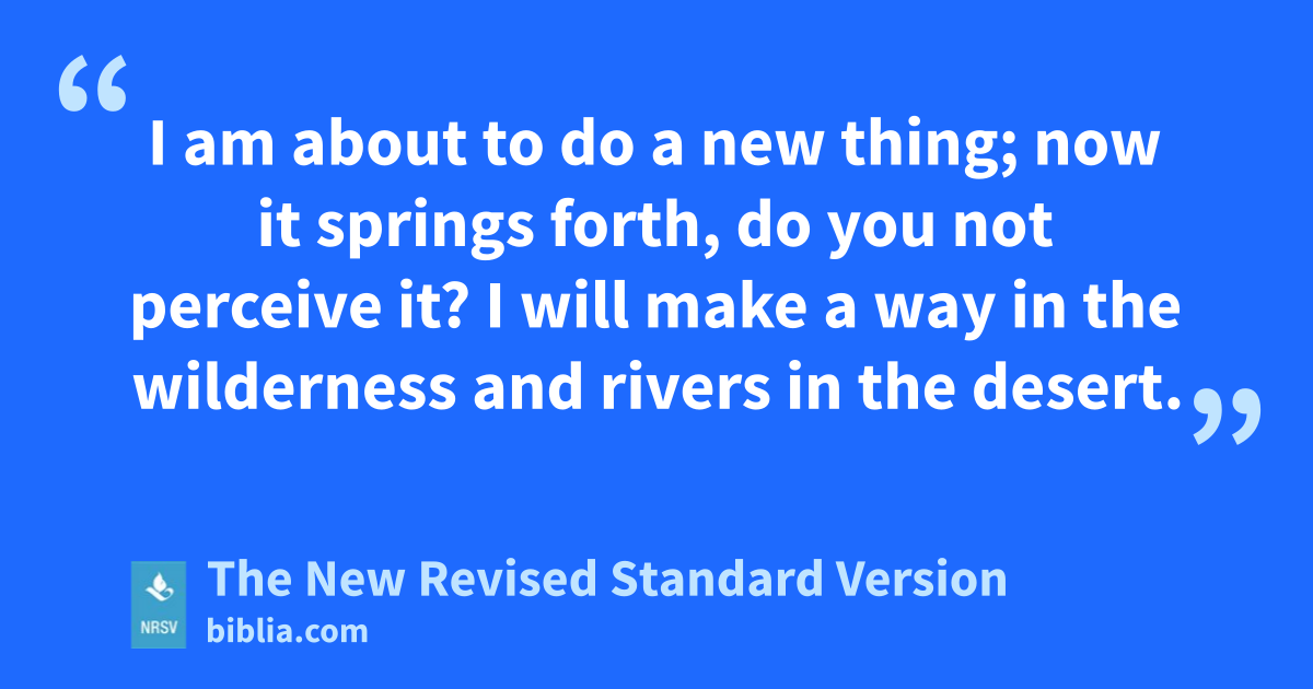 I am about to do a new thing; now it springs forth, do you not perceive it? I will make a way in the wilderness and rivers in the desert.