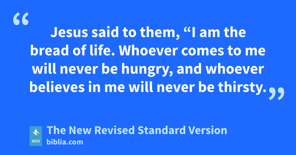 Jesus said to them, “I am the bread of life. Whoever comes to me will never be hungry, and whoever believes in me will never be thirsty.