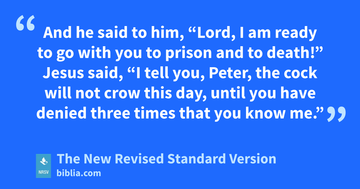 And he said to him, “Lord, I am ready to go with you to prison and to death!” Jesus said, “I tell you, Peter, the cock will not crow this day, until you have denied three times that you know me.”