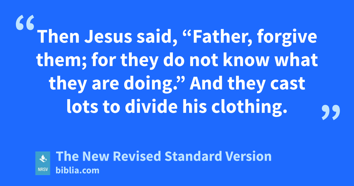 Then Jesus said, “Father, forgive them; for they do not know what they are doing.” And they cast lots to divide his clothing.