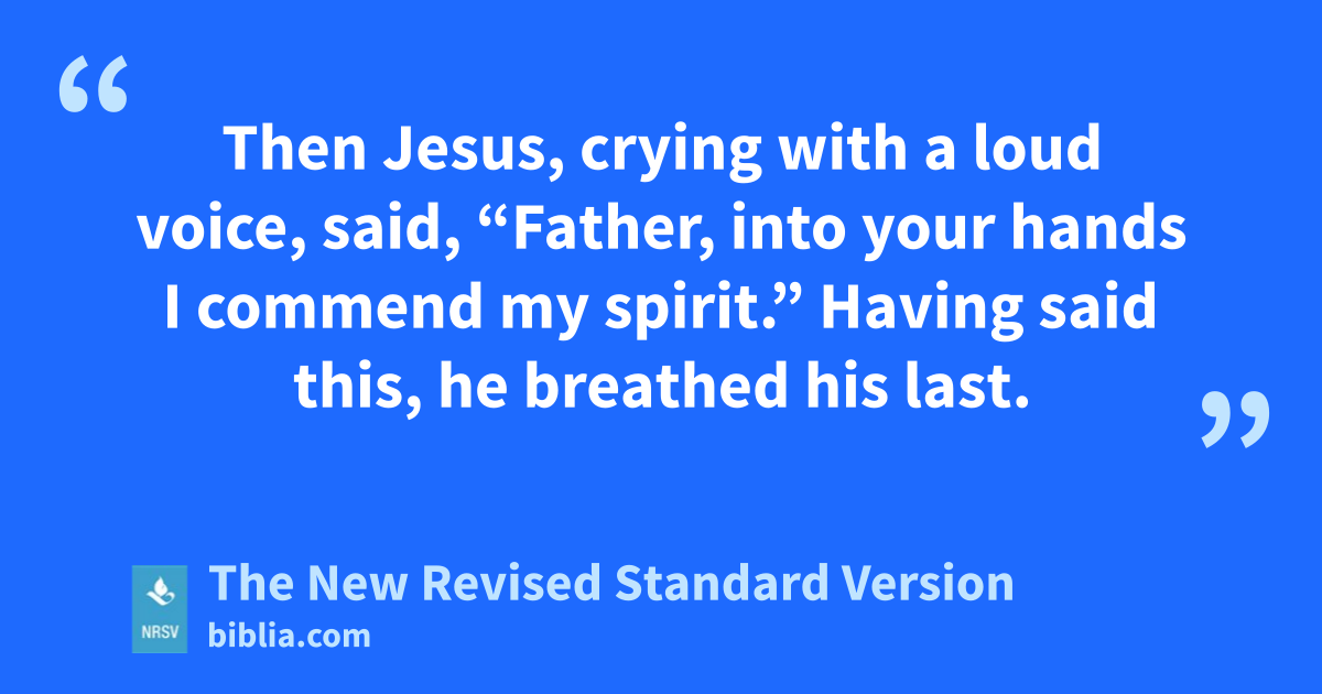 Then Jesus, crying with a loud voice, said, “Father, into your hands I commend my spirit.” Having said this, he breathed his last.