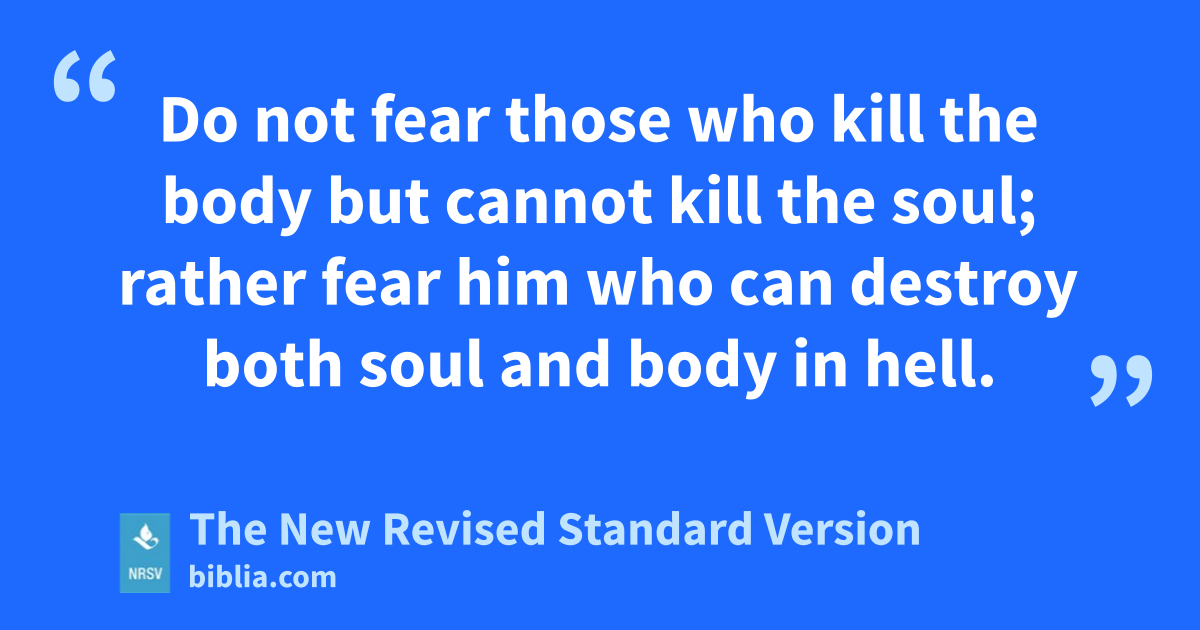 Do not fear those who kill the body but cannot kill the soul; rather fear him who can destroy both soul and body in hell.