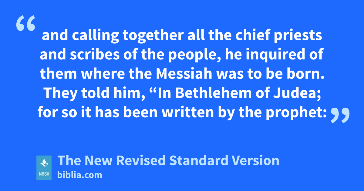 and calling together all the chief priests and scribes of the people, he inquired of them where the Messiah was to be born. They told him, “In Bethlehem of Judea; for so it has been written by the prophet: