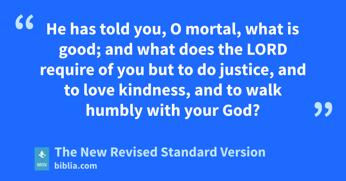 He has told you, O mortal, what is good; and what does the LORD require of you but to do justice, and to love kindness, and to walk humbly with your God?