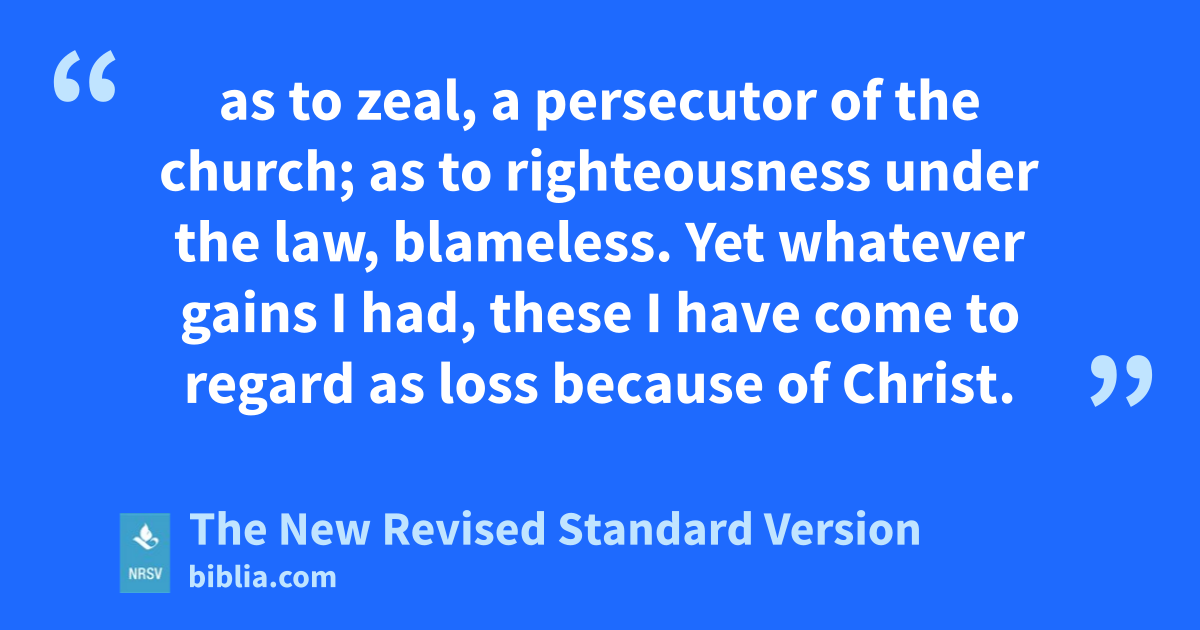 as to zeal, a persecutor of the church; as to righteousness under the law, blameless. Yet whatever gains I had, these I have come to regard as loss because of Christ.