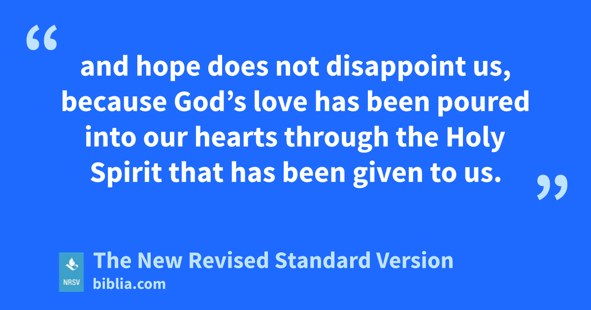 and hope does not disappoint us, because God’s love has been poured into our hearts through the Holy Spirit that has been given to us.