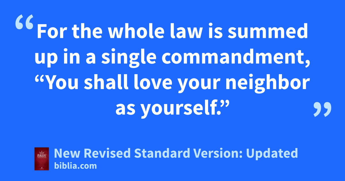 13 For you were called to freedom, brothers and sisters, only do not use your freedom as an opportunity for self-indulgence,e but through love become enslaved to one another.* 14 For the whole law is summed up in a single commandment, “You shall love your neighbor as yourself.”* 15 If, however, you bite and devour one another, take care that you are not consumed by one another.