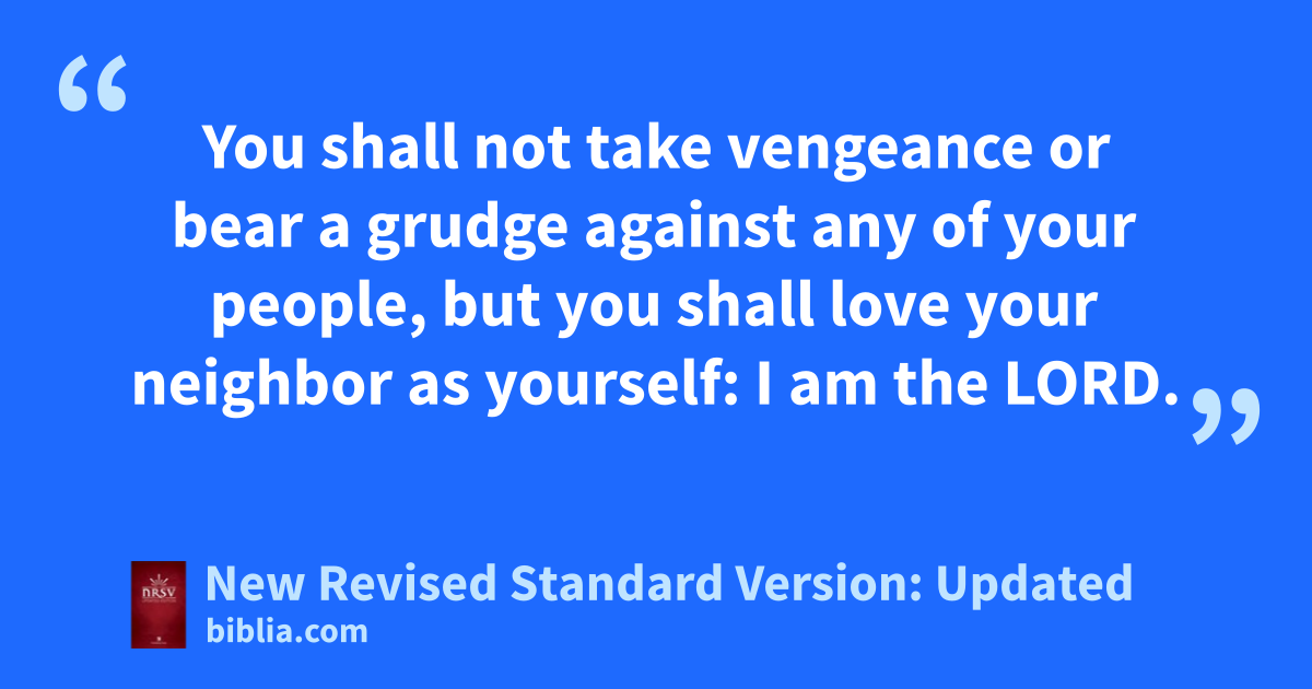 17 “You shall not hate in your heart anyone of your kin; you shall reprove your neighbor, or you will incur guilt yourself.* 18 You shall not take vengeance or bear a grudge against any of your people, but you shall love your neighbor as yourself: I am the Lord.*