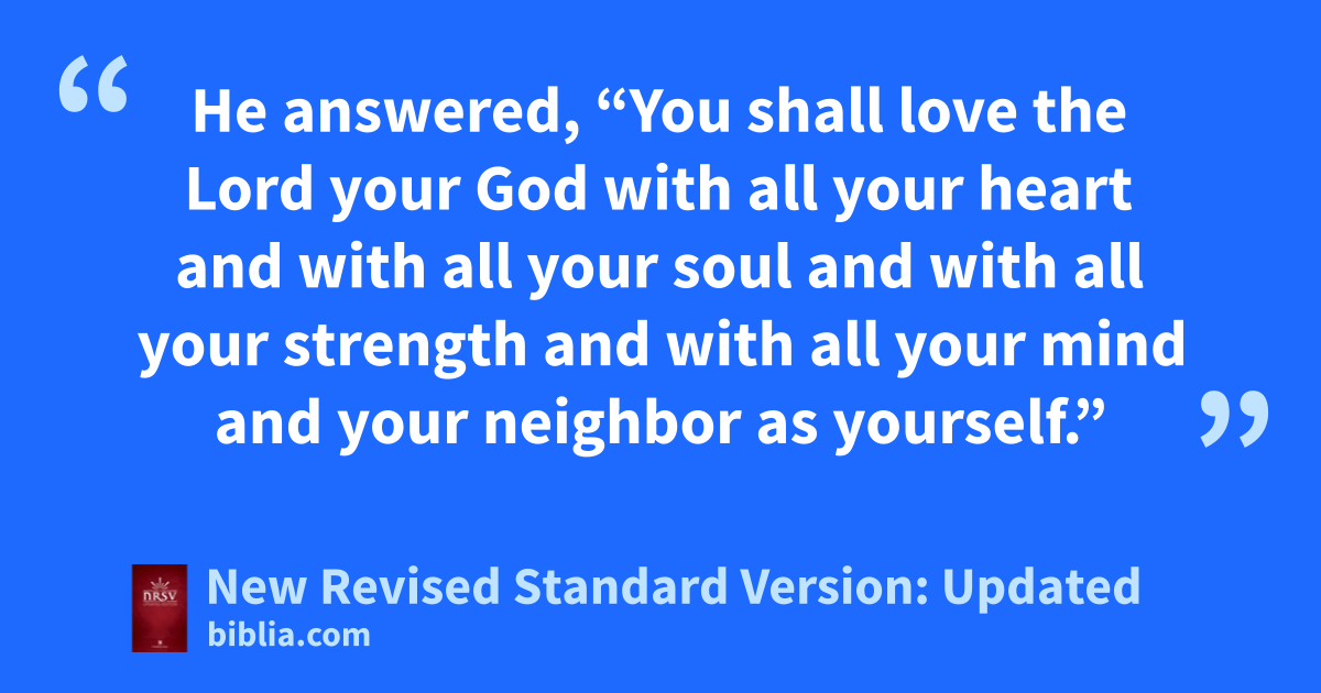 25 An expert in the law stood up to test Jesus.m “Teacher,” he said, “what must I do to inherit eternal life?”* 26 He said to him, “What is written in the law? What do you read there?” 27 He answered, “You shall love the Lord your God with all your heart and with all your soul and with all your strength and with all your mind and your neighbor as yourself.”* 28 And he said to him, “You have given the right answer; do this, and you will live.”*
