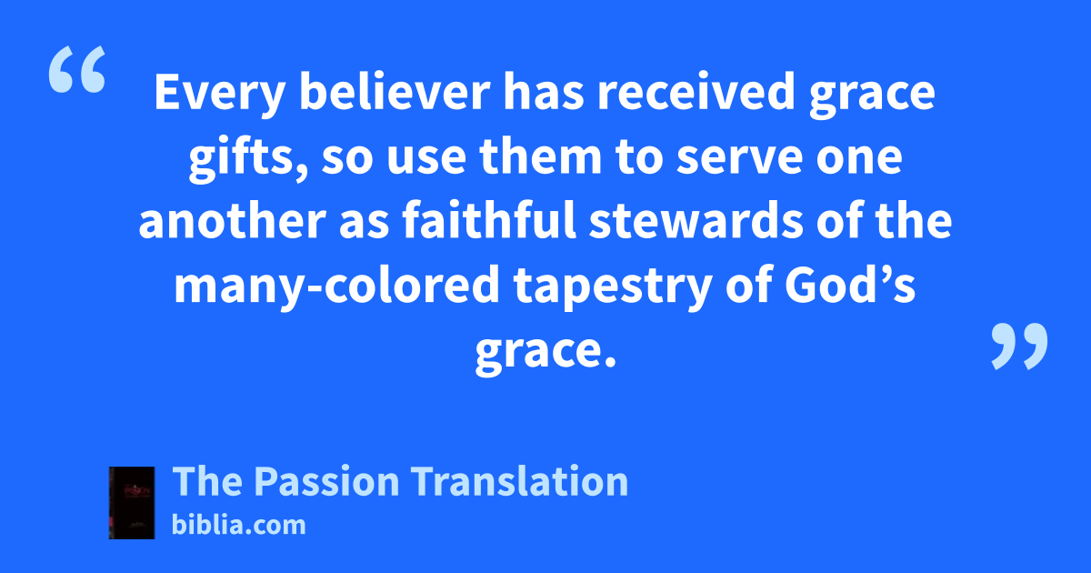 Every believer has received grace gifts, so use them to serve one another as faithful stewards of the many-colored tapestry of God’s grace.