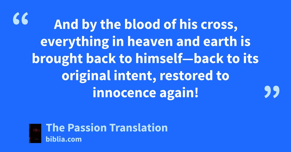And by the blood of his cross, everything in heaven and earth is brought back to himself—back to its original intent, restored to innocence again!