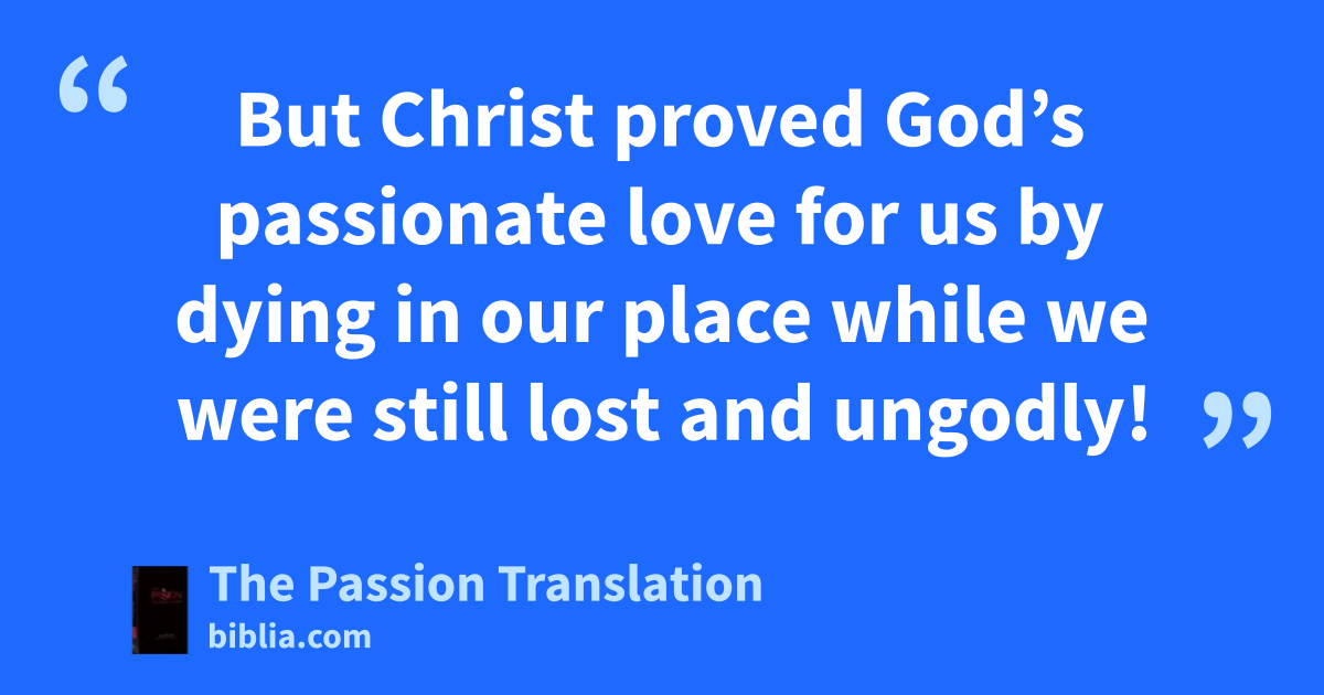 But Christ proved God’s passionate love for us by dying in our place while we were still lost and ungodly!