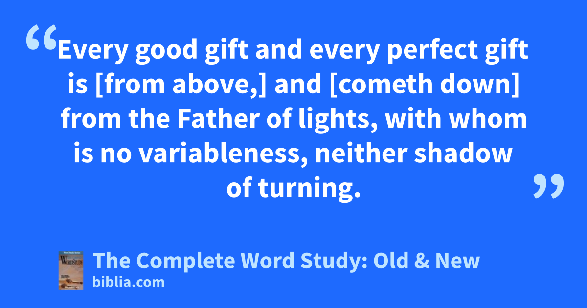 Every good gift and every perfect gift is [from above,] and [cometh down] from the Father of lights, with whom is no variableness, neither shadow of turning.