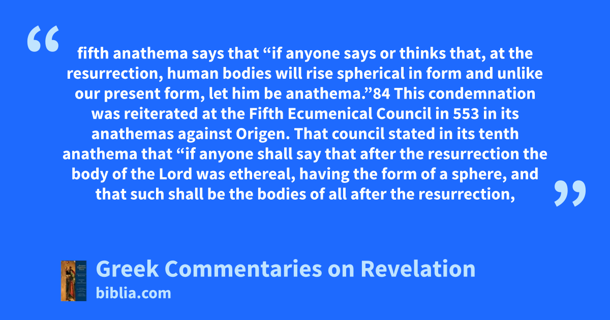 The Eastern church gives little evidence of particular interest in the book of Revelation. Oecumenius of Isauria’s commentary on the book is the earliest full treatment in Greek and dates only from the early sixth century. Along with Oecumenius’s commentary, only that of Andrew of Caesarea (dating from the same era and often summarizing Oecumenius before offering a contrary opinion) and that of...