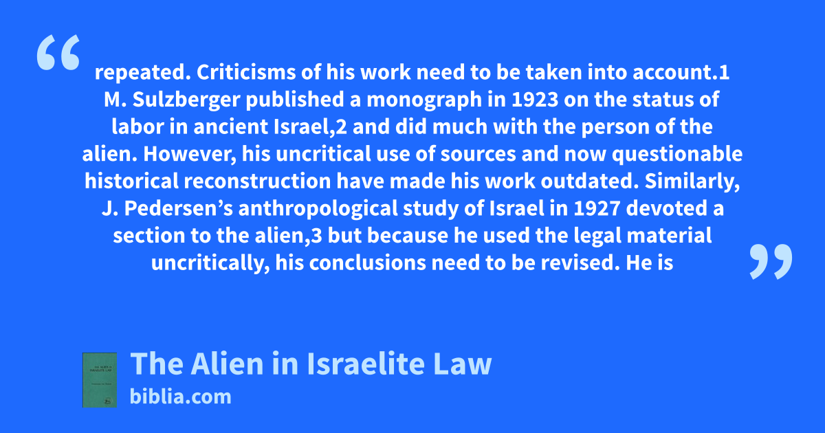 One of the first systematic and critical reconstructions of the history of the social class of aliens in ancient society, this study develops new insights gained from the sociological approach to biblical literature. As Israel developed from tribal society to state, from state to confessional community and from confessional community to province, the identity and legal status of the alien...