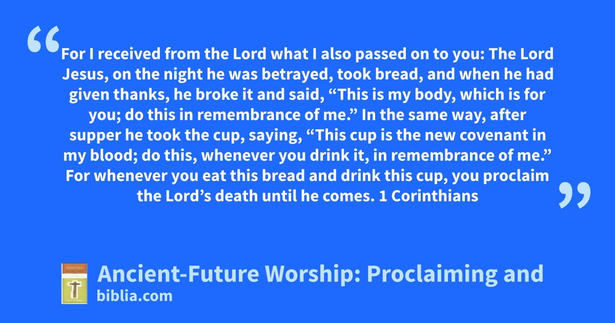 For I received from the Lord what I also passed on to you: The Lord Jesus, on the night he was betrayed, took bread, and when he had given thanks, he broke it and said, “This is my body, which is for you; do this in remembrance of me.” In the same way, after supper he took the cup, saying, “This cup is the new covenant in my blood; do this, whenever you drink it, in remembrance of me.” For whenever you eat this bread and drink this cup, you proclaim the Lord’s death until he comes. 1 Corinthians