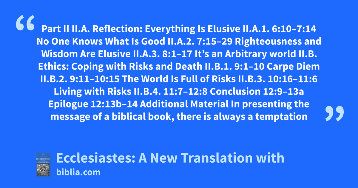 Good advice that stands the test of time—those things we all know are true, tips that help us live the good life—we call wisdom. But, one lifetime is not enough to master the fine art of living. Distilled over centuries, the biblical book of Ecclesiastes offers us the time-tested advice of Israel’s sages. This is the best of wisdom, with echoes of East and West—from Zen and Tao to Merton and...