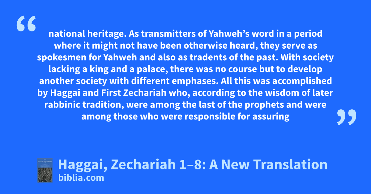 Haggai and Zechariah were written during a critical period in Israel’s history, the momentous return of the Jews from Babylonian exile. Following the conquest of Babylon by the Persian Empire, the Israelites sought to reestablish their ethnic and religious legacy in Judah. This was a time of profound turmoil and uncertainty, and Haggai and Zechariah provided a crucial measure of support and...