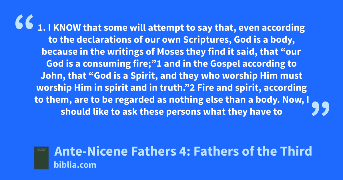 Ante-Nicene Fathers, Volume IV: Fathers of the Third Century: Tertullian, Part Fourth; Minucius Felix; Commodian; Origen, Parts First and Second. The Early Church Fathers is one of the most important collections of historical, philosophical and theological writings available in English to the student of the Christian Church. These documents provide the most comprehensive witness to the...