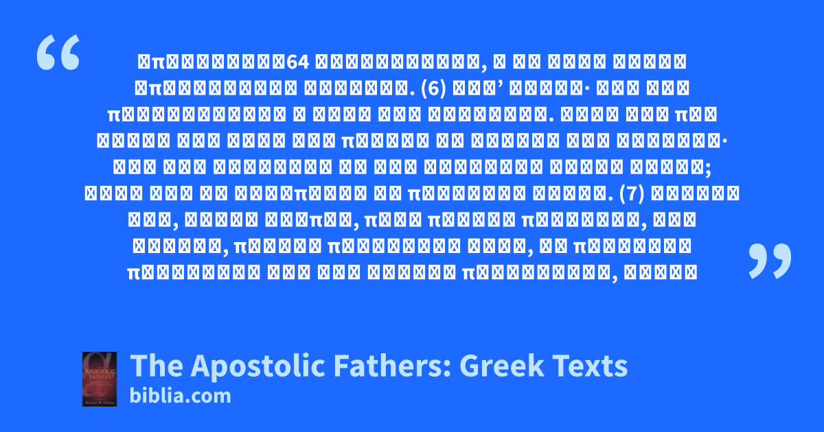 ἀπερίτμητα64 ἀκροβυστίαν, ὁ δὲ λαὸς οὗτος ἀπερίτμητος καρδίας. (6) Ἀλλʼ ἐρεῖς· Καὶ μὴν περιτέτμηται ὁ λαὸς εἰς σφραγῖδα. ἀλλὰ καὶ πᾶς Σύρος καὶ Ἄραψ καὶ πάντες οἱ ἱερεῖς τῶν εἰδώλων· ἄρα οὖν κἀκεῖνοι ἐκ τῆς διαθήκης αὐτῶν εἰσίν; ἀλλὰ καὶ οἱ Αἰγύπτιοι ἐν περιτομῇ εἰσίν. (7) Μάθετε οὖν, τέκνα ἀγάπης, περὶ πάντων πλουσίως, ὅτι Ἀβραάμ, πρῶτος περιτομὴν δούς, ἐν πνεύματι προβλέψας εἰς τὸν Ἰησοῦν περιέτεμεν, λαβὼν