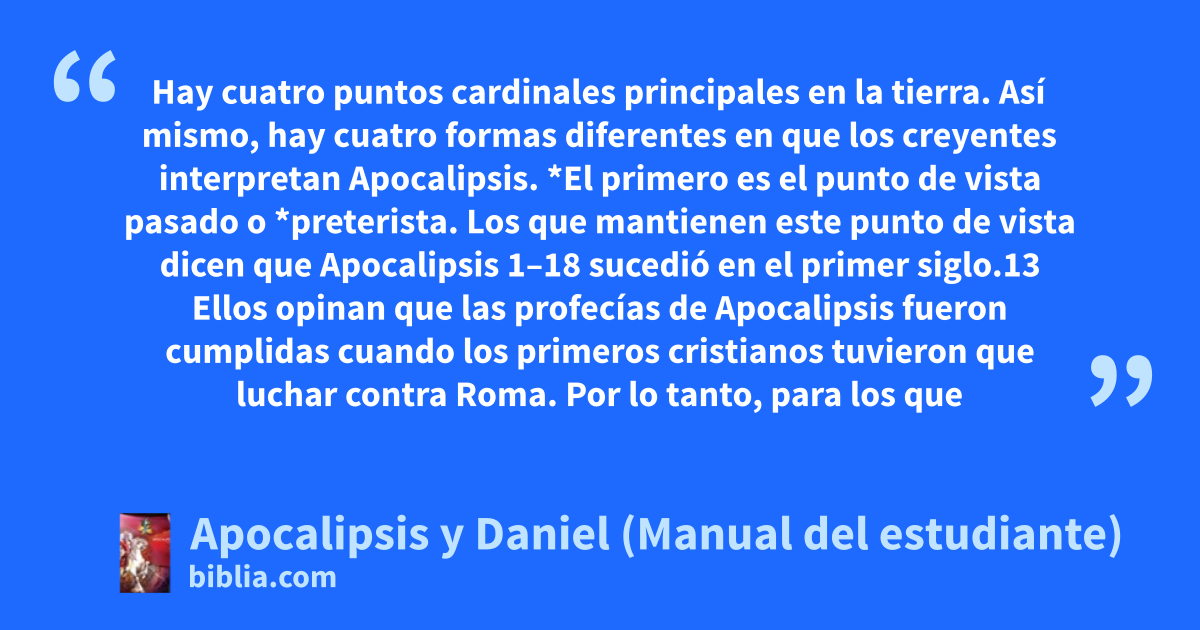 Es un estudio del fondo histórico, del simbolismo y del significado del último libro de la Biblia. Se exploran, se interpretan y se integran pasajes relacionados de Daniel y de otros libros bíblicos. Hay un énfasis pastoral para comprender, ilustrar y aplicar las perennes verdades bíblicas de este libro profético.