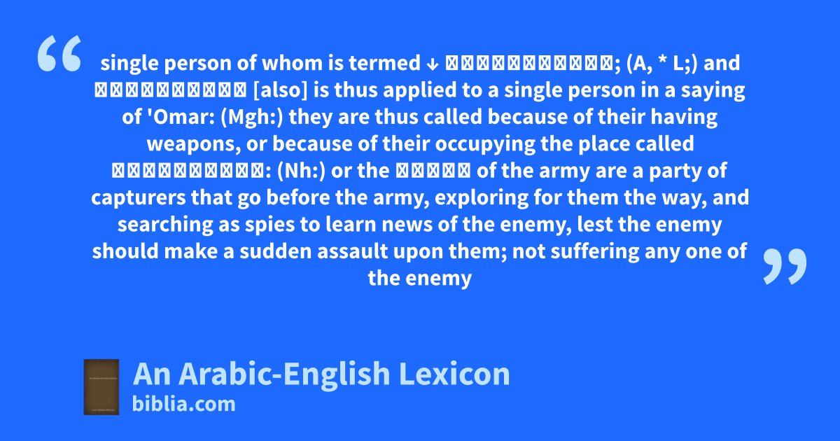 single person of whom is termed ↓ مَسْلَحِىٌّ; (A, * L;) and مَسْلَحَةٌ [also] is thus applied to a single person in a saying of 'Omar: (Mgh:) they are thus called because of their having weapons, or because of their occupying the place called مَسْلَحَةٌ: (Nh:) or the مسلحة of the army are a party of capturers that go before the army, exploring for them the way, and searching as spies to learn news of the enemy, lest the enemy should make a sudden assault upon them; not suffering any one of the enemy