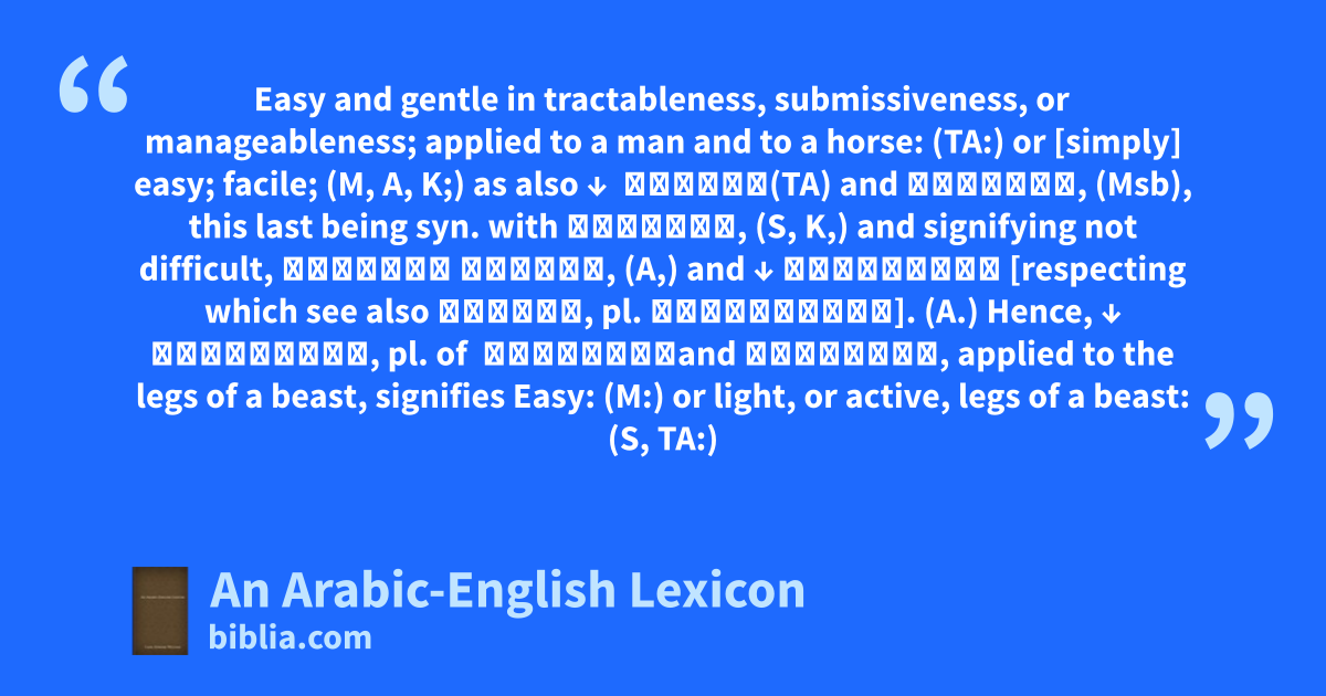 Easy and gentle in tractableness, submissiveness, or manageableness; applied to a man and to a horse: (TA:) or [simply] easy; facile; (M, A, K;) as also ↓ يُسْرٌ (TA) and يَسِيرٌ, (Msb), this last being syn. with هَيِّنٌ, (S, K,) and signifying not difficult, غَيْرُ عَسِيرٍ, (A,) and ↓ مَيْسُورٌ [respecting which see also عُسْرٌ, pl. مَيَاسِيرُ]. (A.) Hence, ↓ يَسَرَاتٌ, pl. of يَسْرَةٌ and يَسَرَةٌ, applied to the legs of a beast, signifies Easy: (M:) or light, or active, legs of a beast: (S, TA:)