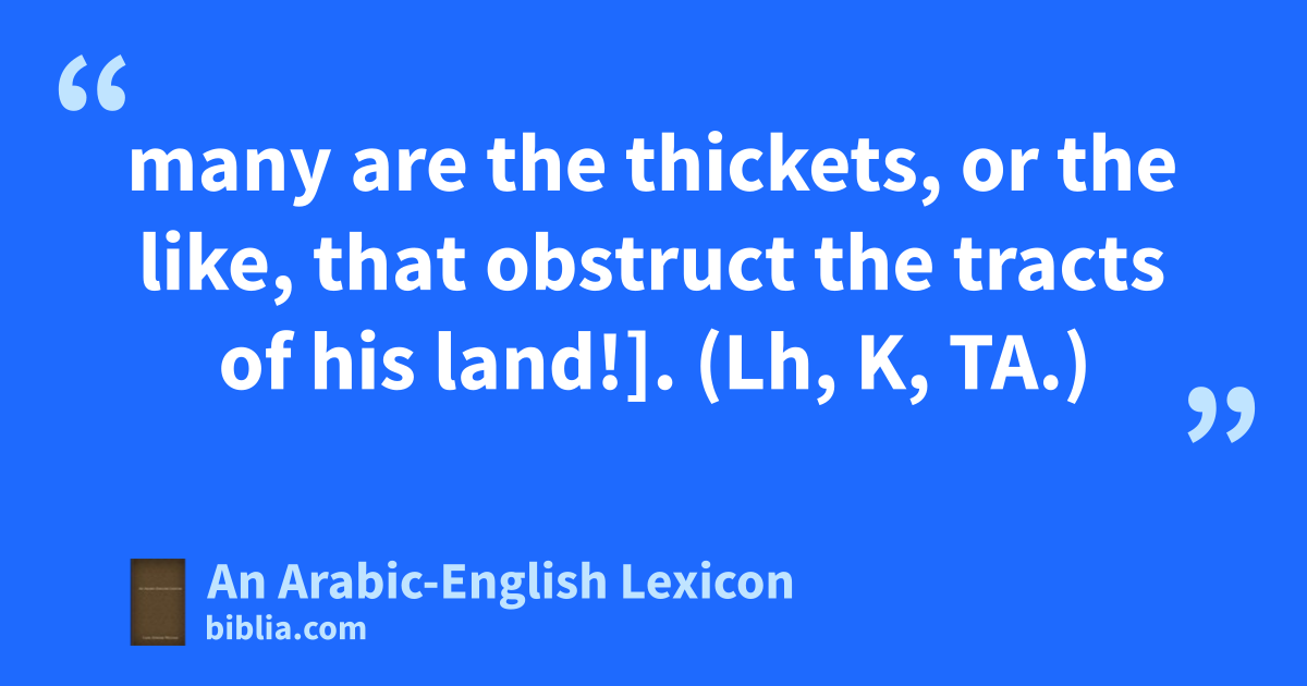 many are the thickets, or the like, that obstruct the tracts of his land!]. (Lh, K, TA.)