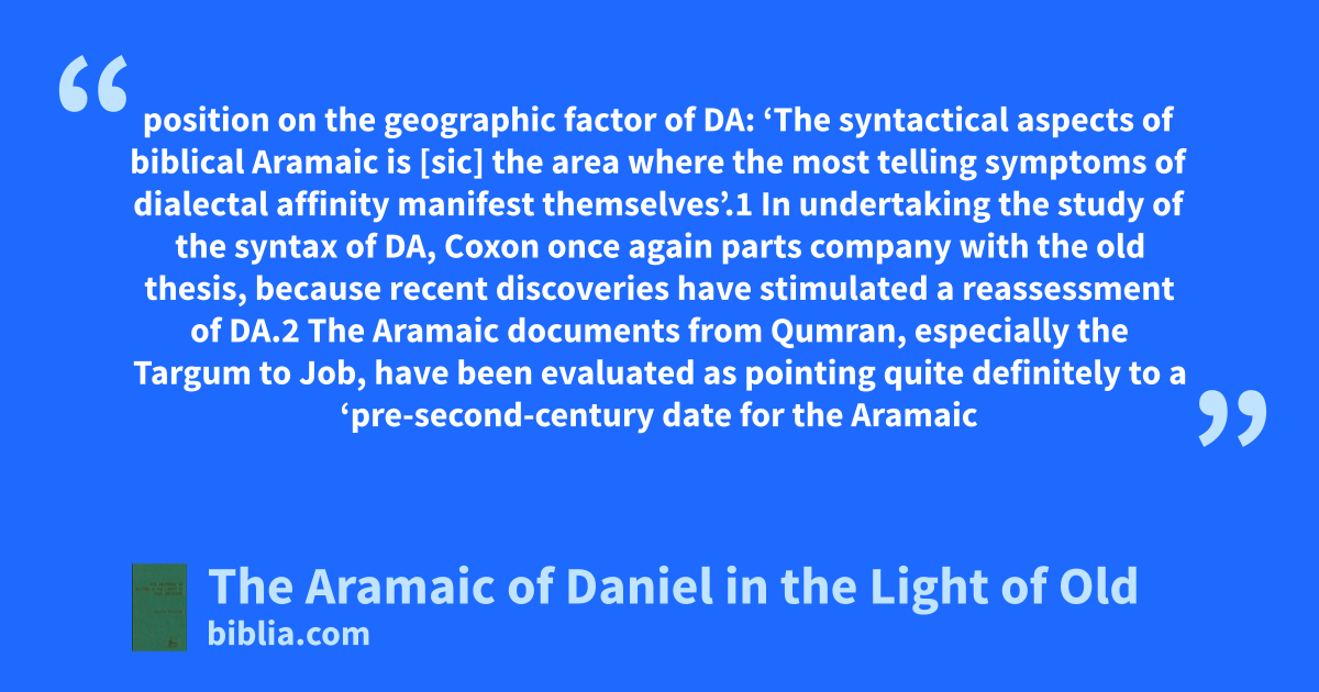 The second through seventh chapters of Daniel are ones to note, because instead of being written in Hebrew, they are written in Aramaic. Recognizing that these chapters are written in Aramaic is important because it gives us a better understanding of symbolism and how it is handled in biblical narrative. By utilizing The Aramaic of Daniel in the Light of Old Aramaic, you are able to gain...