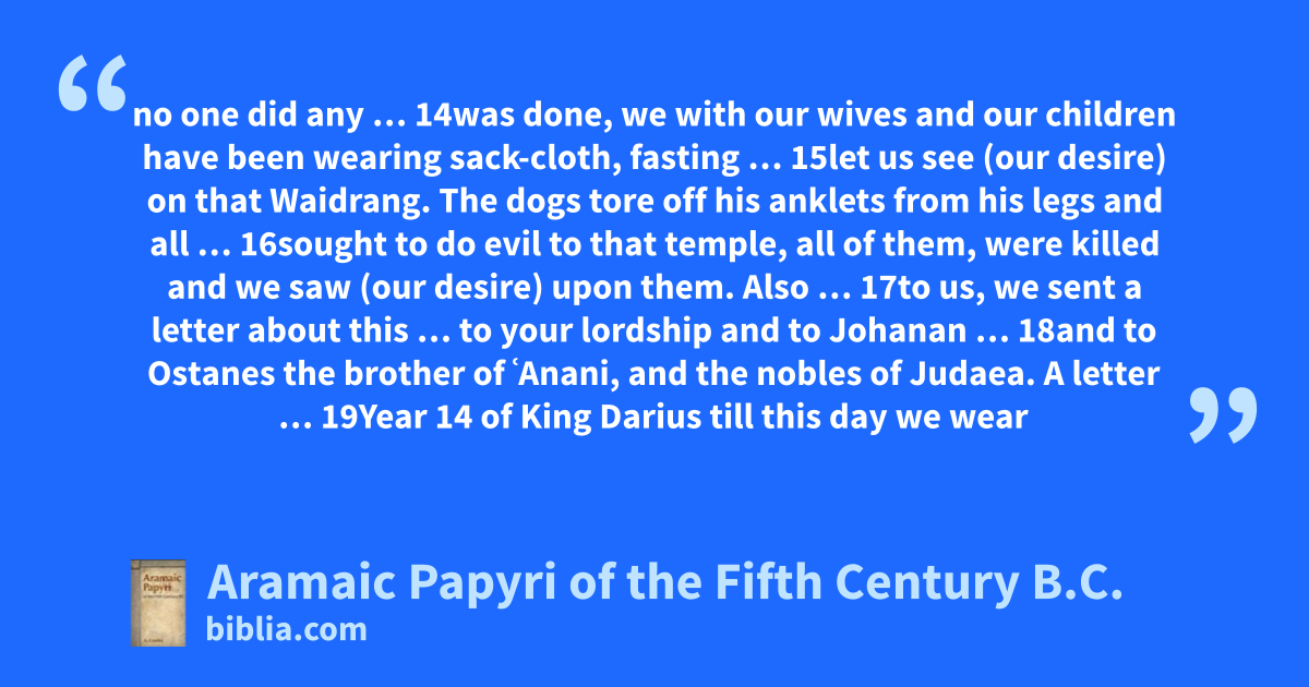 This volume contains A. Cowley’s careful study of facsimiles, texts, papyri, and other materials. Collected in one volume and arranged chronologically, Aramaic Papyri of the Fifth Century B.C. contains all legible pre-Christian Aramaic papyri known at the time of publication. It includes letters, legal documents, lists of names, accounts, and literary pieces. Some are complete; others are...