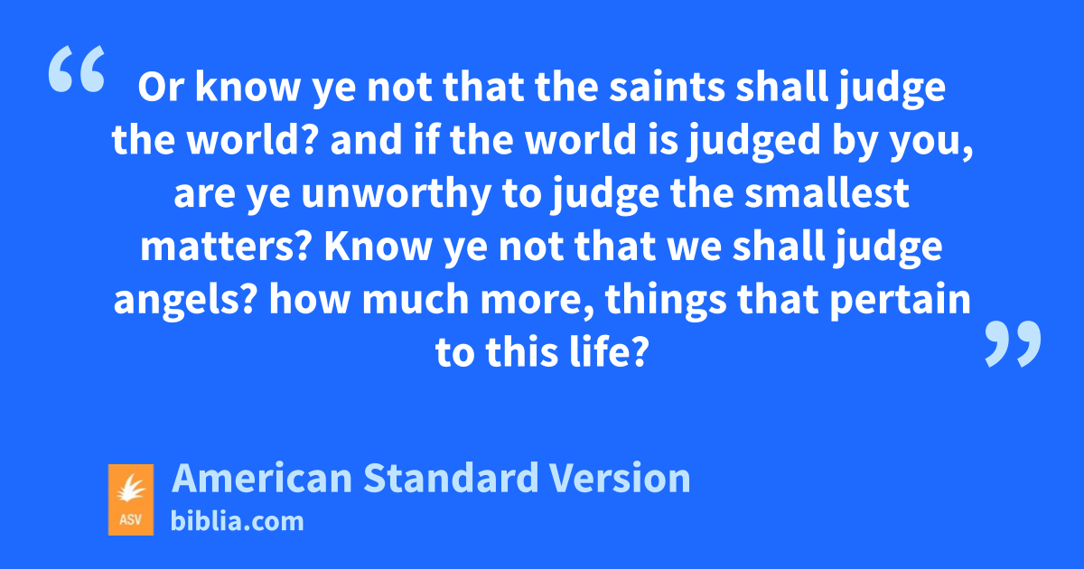 6 Dare any of you, having a matter against his neighbor, go to law before the unrighteous, and not before the saints? 2Or know ye not that the saints shall judge the world? and if the world is judged by you, are ye unworthy to judge the smallest matters? 3Know ye not that we shall judge angels? how much more, things that pertain to this life? 4If then ye have to judge things pertaining to this life, do ye set them to judge who are of no account in the church? 5I say this to move you to shame. What, cannot there be found among you one wise man who shall be able to decide between his brethren, 6but brother goeth to law with brother, and that before unbelievers? 7Nay, already it is altogether a defect in you, that ye have lawsuits one with another. Why not rather take wrong? why not rather be defrauded? 8Nay, but ye yourselves do wrong, and defraud, and that your brethren. 9Or know ye not that the unrighteous shall not inherit the kingdom of God? Be not deceived: neither fornicators, nor idolaters, nor adulterers, nor effeminate, nor abusers of themselves with men, 10nor thieves, nor covetous, nor drunkards, nor revilers, nor extortioners, shall inherit the kingdom of God. 11And such were some of you: but ye were washed, but ye were sanctified, but ye were justified in the name of the Lord Jesus Christ, and in the Spirit of our God.