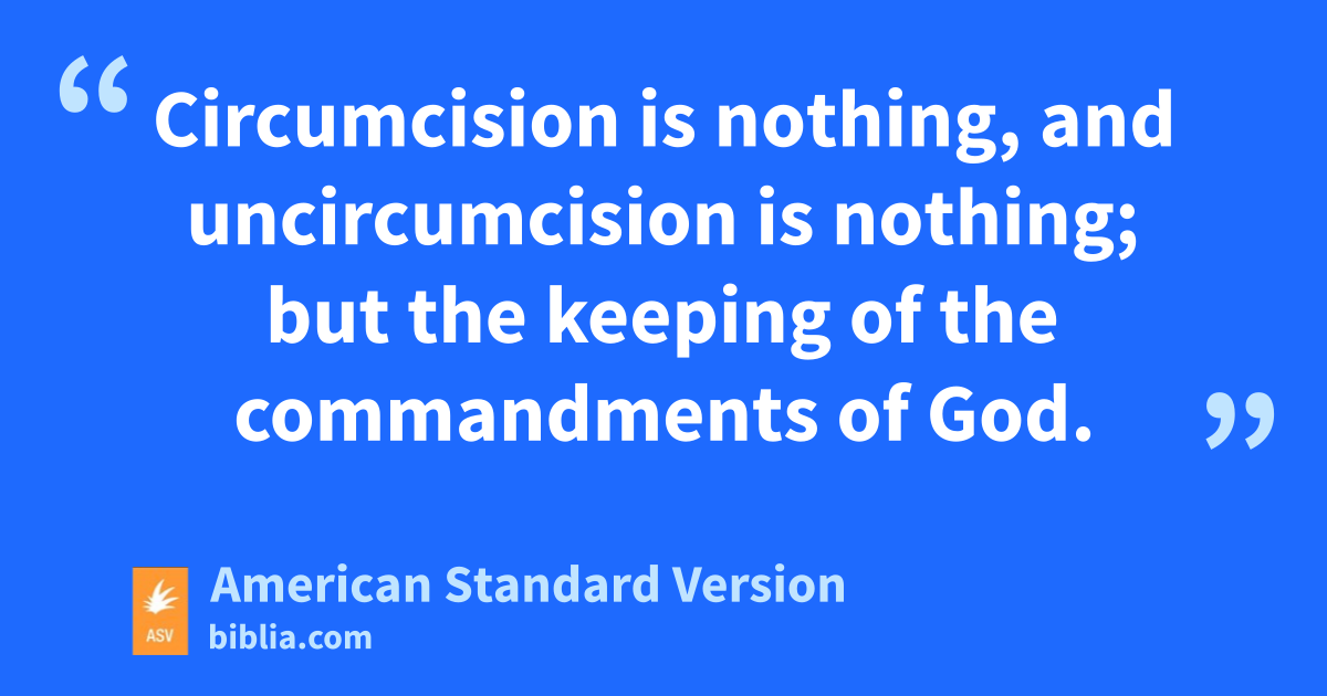 8But I say to the unmarried and to widows, It is good for them if they abide even as I. 9But if they have not continency, let them marry: for it is better to marry than to burn. 10But unto the married I give charge, yea not I, but the Lord, That the wife depart not from her husband 11(but should she depart, let her remain unmarried, or else be reconciled to her husband); and that the husband leave not his wife. 12But to the rest say I, not the Lord: If any brother hath an unbelieving wife, and she is content to dwell with him, let him not leave her. 13And the woman that hath an unbelieving husband, and he is content to dwell with her, let her not leave her husband. 14For the unbelieving husband is sanctified in the wife, and the unbelieving wife is sanctified in the brother: else were your children unclean; but now are they holy. 15Yet if the unbelieving departeth, let him depart: the brother or the sister is not under bondage in such cases: but God hath called us in peace. 16For how knowest thou, O wife, whether thou shalt save thy husband? or how knowest thou, O husband, whether thou shalt save thy wife? 17Only, as the Lord hath distributed to each man, as God hath called each, so let him walk. And so ordain I in all the churches. 18Was any man called being circumcised? let him not become uncircumcised. Hath any been called in uncircumcision? let him not be circumcised. 19Circumcision is nothing, and uncircumcision is nothing; but the keeping of the commandments of God. 20Let each man abide in that calling wherein he was called. 21Wast thou called being a bondservant? care not for it: nay, even if thou canst become free, use it rather. 22For he that was called in the Lord being a bondservant, is the Lord’s freedman: likewise he that was called being free, is Christ’s bondservant. 23Ye were bought with a price; become not bondservants of men. 24Brethren, let each man, wherein he was called, therein abide with God.