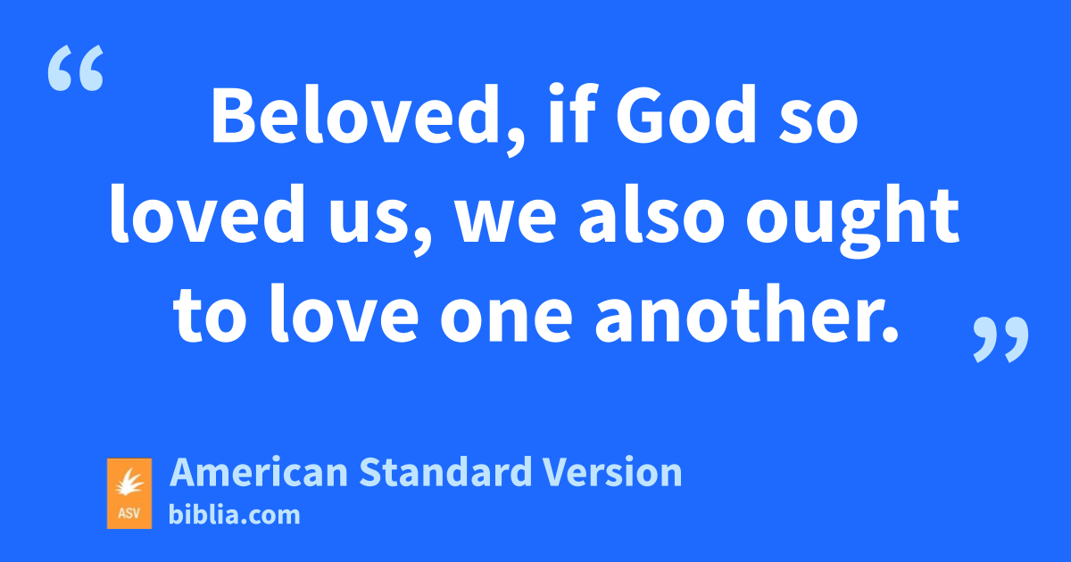 7Beloved, let us love one another: for love is of God; and every one that loveth is begotten of God, and knoweth God. 8He that loveth not knoweth not God; for God is love. 9Herein was the love of God manifested in us, that God hath sent his only begotten Son into the world that we might live through him. 10Herein is love, not that we loved God, but that he loved us, and sent his Son to be the propitiation for our sins. 11Beloved, if God so loved us, we also ought to love one another. 12No man hath beheld God at any time: if we love one another, God abideth in us, and his love is perfected in us: 13hereby we know that we abide in him and he in us, because he hath given us of his Spirit. 14And we have beheld and bear witness that the Father hath sent the Son to be the Saviour of the world. 15Whosoever shall confess that Jesus is the Son of God, God abideth in him, and he in God. 16And we know and have believed the love which God hath in us. God is love; and he that abideth in love abideth in God, and God abideth in him. 17Herein is love made perfect with us, that we may have boldness in the day of judgment; because as he is, even so are we in this world. 18There is no fear in love: but perfect love casteth out fear, because fear hath punishment; and he that feareth is not made perfect in love. 19We love, because he first loved us. 20If a man say, I love God, and hateth his brother, he is a liar: for he that loveth not his brother whom he hath seen, cannot love God whom he hath not seen. 21And this commandment have we from him, that he who loveth God love his brother also.
