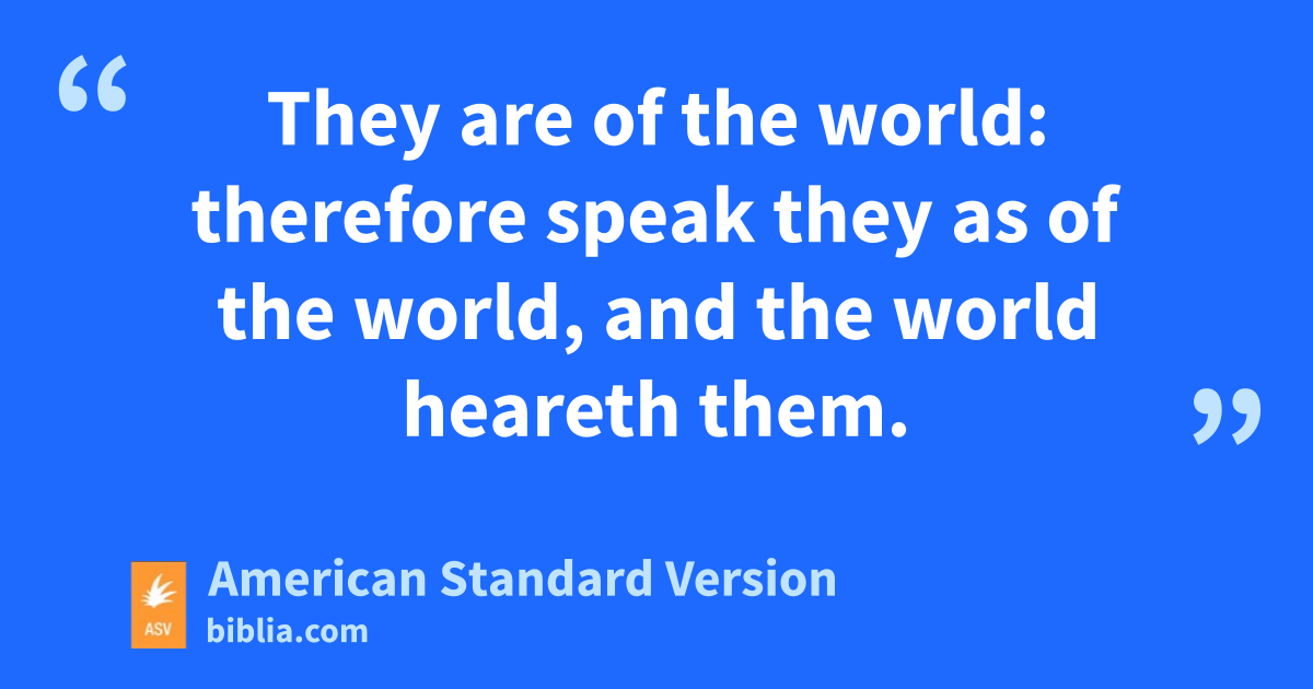 4 Beloved, believe not every spirit, but prove the spirits, whether they are of God; because many false prophets are gone out into the world. 2Hereby know ye the Spirit of God: every spirit that confesseth that Jesus Christ is come in the flesh is of God: 3and every spirit that confesseth not Jesus is not of God: and this is the spirit of the antichrist, whereof ye have heard that it cometh; and now it is in the world already. 4Ye are of God, my little children, and have overcome them: because greater is he that is in you than he that is in the world. 5They are of the world: therefore speak they as of the world, and the world heareth them. 6We are of God: he that knoweth God heareth us; he who is not of God heareth us not. By this we know the spirit of truth, and the spirit of error.