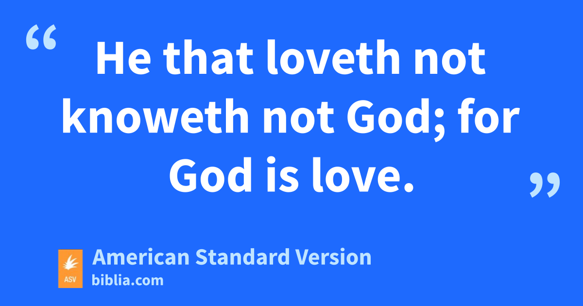 7Beloved, let us love one another: for love is of God; and every one that loveth is begotten of God, and knoweth God. 8He that loveth not knoweth not God; for God is love. 9Herein was the love of God manifested in us, that God hath sent his only begotten Son into the world that we might live through him. 10Herein is love, not that we loved God, but that he loved us, and sent his Son to be the propitiation for our sins. 11Beloved, if God so loved us, we also ought to love one another. 12No man hath beheld God at any time: if we love one another, God abideth in us, and his love is perfected in us: 13hereby we know that we abide in him and he in us, because he hath given us of his Spirit. 14And we have beheld and bear witness that the Father hath sent the Son to be the Saviour of the world. 15Whosoever shall confess that Jesus is the Son of God, God abideth in him, and he in God. 16And we know and have believed the love which God hath in us. God is love; and he that abideth in love abideth in God, and God abideth in him. 17Herein is love made perfect with us, that we may have boldness in the day of judgment; because as he is, even so are we in this world. 18There is no fear in love: but perfect love casteth out fear, because fear hath punishment; and he that feareth is not made perfect in love. 19We love, because he first loved us. 20If a man say, I love God, and hateth his brother, he is a liar: for he that loveth not his brother whom he hath seen, cannot love God whom he hath not seen. 21And this commandment have we from him, that he who loveth God love his brother also.