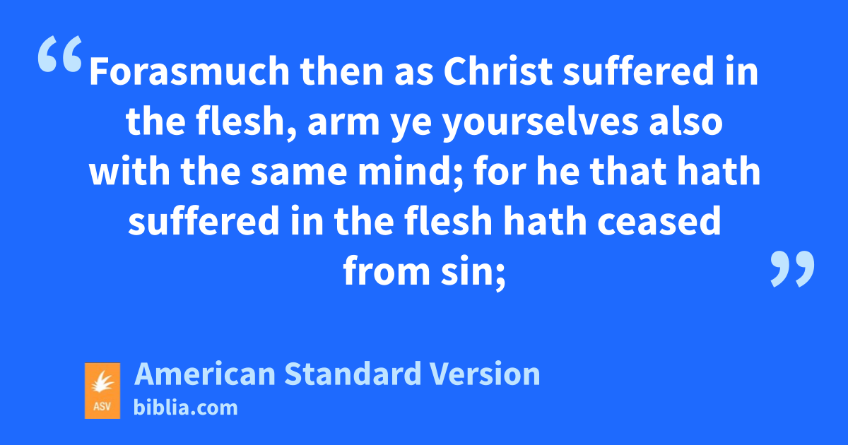 4 Forasmuch then as Christ suffered in the flesh, arm ye yourselves also with the same mind; for he that hath suffered in the flesh hath ceased from sin; 2that ye no longer should live the rest of your time in the flesh to the lusts of men, but to the will of God. 3For the time past may suffice to have wrought the desire of the Gentiles, and to have walked in lasciviousness, lusts, winebibbings, revellings, carousings, and abominable idolatries: 4wherein they think it strange that ye run not with them into the same excess of riot, speaking evil of you: 5who shall give account to him that is ready to judge the living and the dead. 6For unto this end was the gospel preached even to the dead, that they might be judged indeed according to men in the flesh, but live according to God in the spirit.