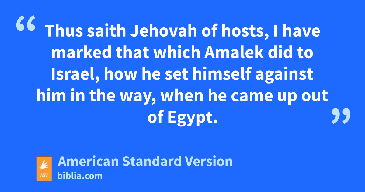 15 And Samuel said unto Saul, Jehovah sent me to anoint thee to be king over his people, over Israel: now therefore hearken thou unto the voice of the words of Jehovah. 2Thus saith Jehovah of hosts, I have marked that which Amalek did to Israel, how he set himself against him in the way, when he came up out of Egypt. 3Now go and smite Amalek, and utterly destroy all that they have, and spare them not; but slay both man and woman, infant and suckling, ox and sheep, camel and ass.
