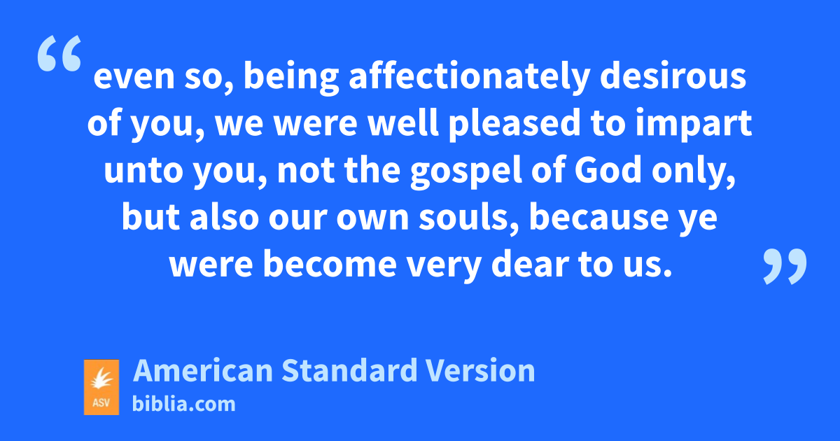 2 For yourselves, brethren, know our entering in unto you, that it hath not been found vain: 2but having suffered before and been shamefully treated, as ye know, at Philippi, we waxed bold in our God to speak unto you the gospel of God in much conflict. 3For our exhortation is not of error, nor of uncleanness, nor in guile: 4but even as we have been approved of God to be intrusted with the gospel, so we speak; not as pleasing men, but God who proveth our hearts. 5For neither at any time were we found using words of flattery, as ye know, nor a cloak of covetousness, God is witness; 6nor seeking glory of men, neither from you nor from others, when we might have claimed authority as apostles of Christ. 7But we were gentle in the midst of you, as when a nurse cherisheth her own children: 8even so, being affectionately desirous of you, we were well pleased to impart unto you, not the gospel of God only, but also our own souls, because ye were become very dear to us. 9For ye remember, brethren, our labor and travail: working night and day, that we might not burden any of you, we preached unto you the gospel of God. 10Ye are witnesses, and God also, how holily and righteously and unblamably we behaved ourselves toward you that believe: 11as ye know how we dealt with each one of you, as a father with his own children, exhorting you, and encouraging you, and testifying, 12to the end that ye should walk worthily of God, who calleth you into his own kingdom and glory.