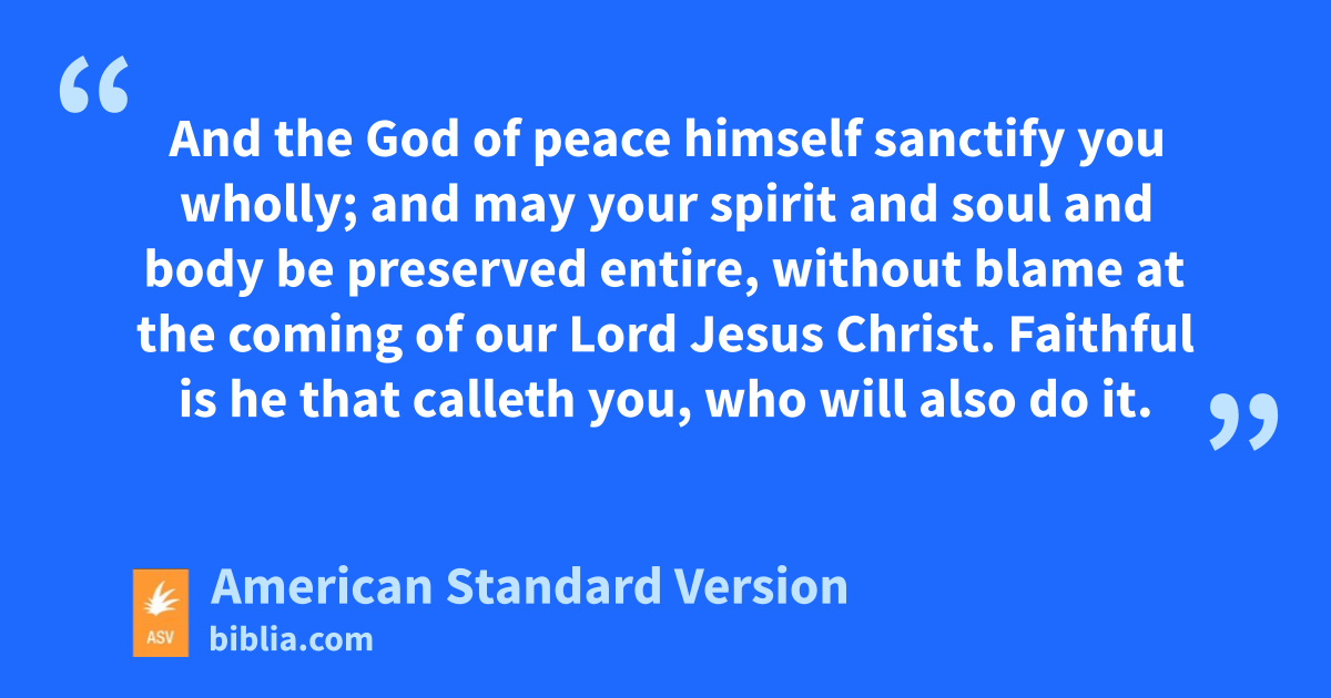 23And the God of peace himself sanctify you wholly; and may your spirit and soul and body be preserved entire, without blame at the coming of our Lord Jesus Christ. 24Faithful is he that calleth you, who will also do it.