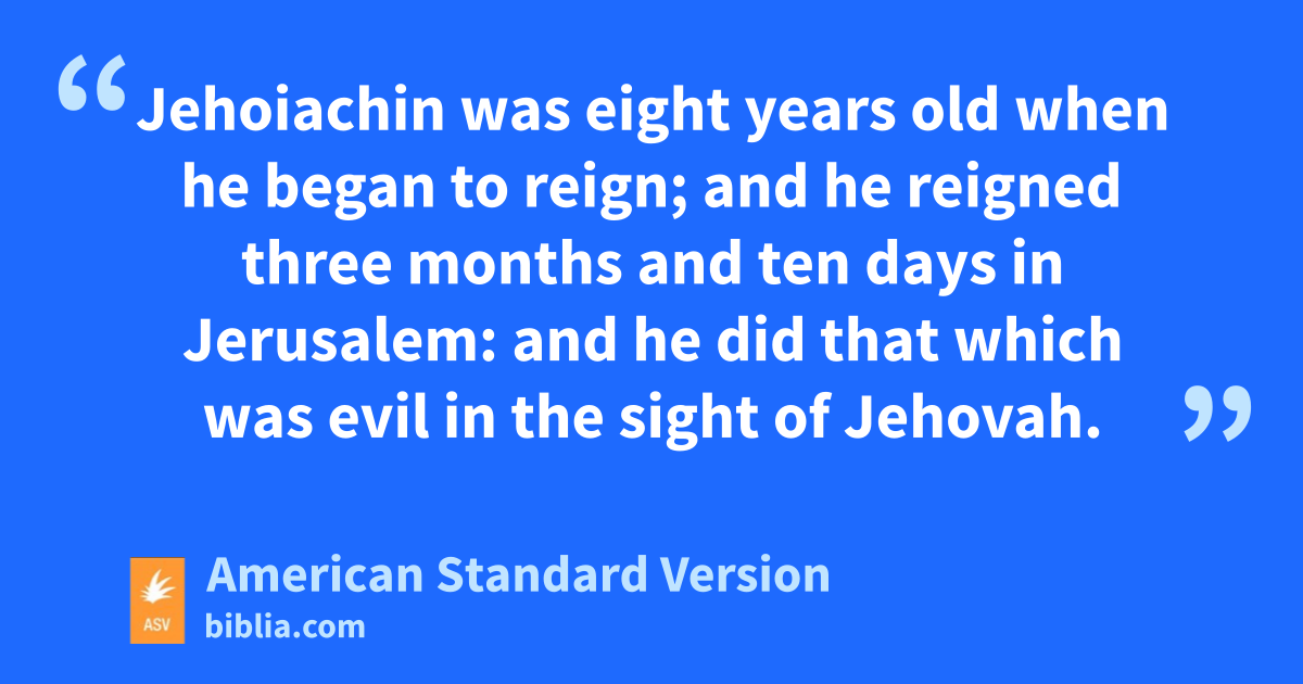 9Jehoiachin was eight years old when he began to reign; and he reigned three months and ten days in Jerusalem: and he did that which was evil in the sight of Jehovah. 10And at the return of the year king Nebuchadnezzar sent, and brought him to Babylon, with the goodly vessels of the house of Jehovah, and made Zedekiah his brother king over Judah and Jerusalem.