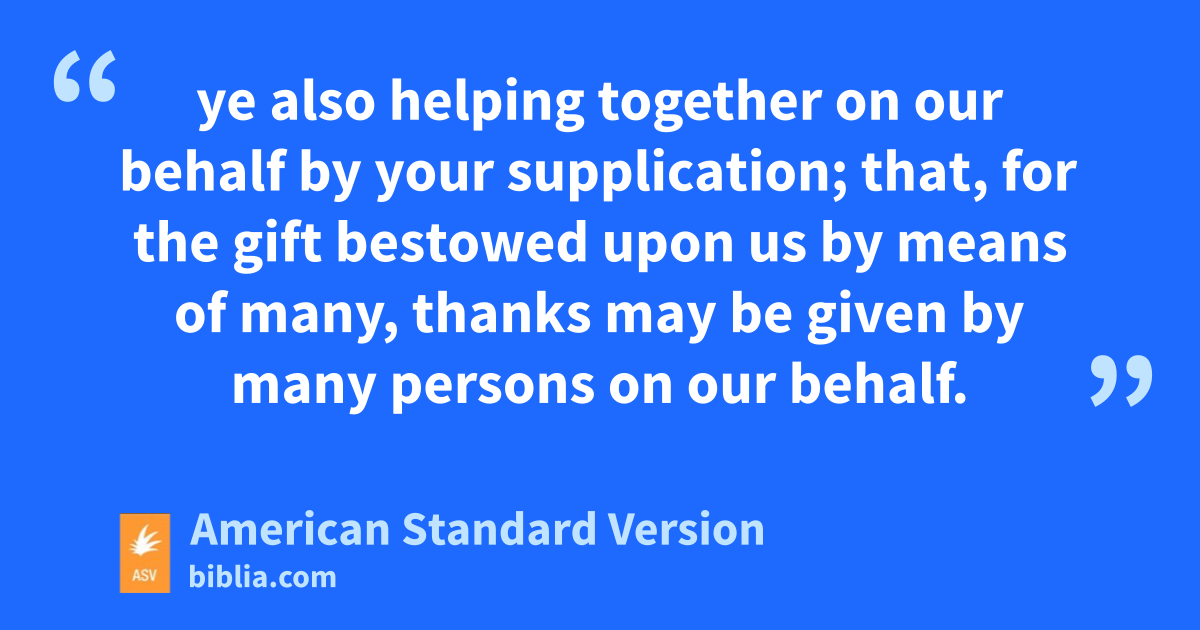 3Blessed be the God and Father of our Lord Jesus Christ, the Father of mercies and God of all comfort; 4who comforteth us in all our affliction, that we may be able to comfort them that are in any affliction, through the comfort wherewith we ourselves are comforted of God. 5For as the sufferings of Christ abound unto us, even so our comfort also aboundeth through Christ. 6But whether we are afflicted, it is for your comfort and salvation; or whether we are comforted, it is for your comfort, which worketh in the patient enduring of the same sufferings which we also suffer: 7and our hope for you is stedfast; knowing that, as ye are partakers of the sufferings, so also are ye of the comfort. 8For we would not have you ignorant, brethren, concerning our affliction which befell us in Asia, that we were weighed down exceedingly, beyond our power, insomuch that we despaired even of life: 9yea, we ourselves have had the sentence of death within ourselves, that we should not trust in ourselves, but in God who raiseth the dead: 10who delivered us out of so great a death, and will deliver: on whom we have set our hope that he will also still deliver us; 11ye also helping together on our behalf by your supplication; that, for the gift bestowed upon us by means of many, thanks may be given by many persons on our behalf.