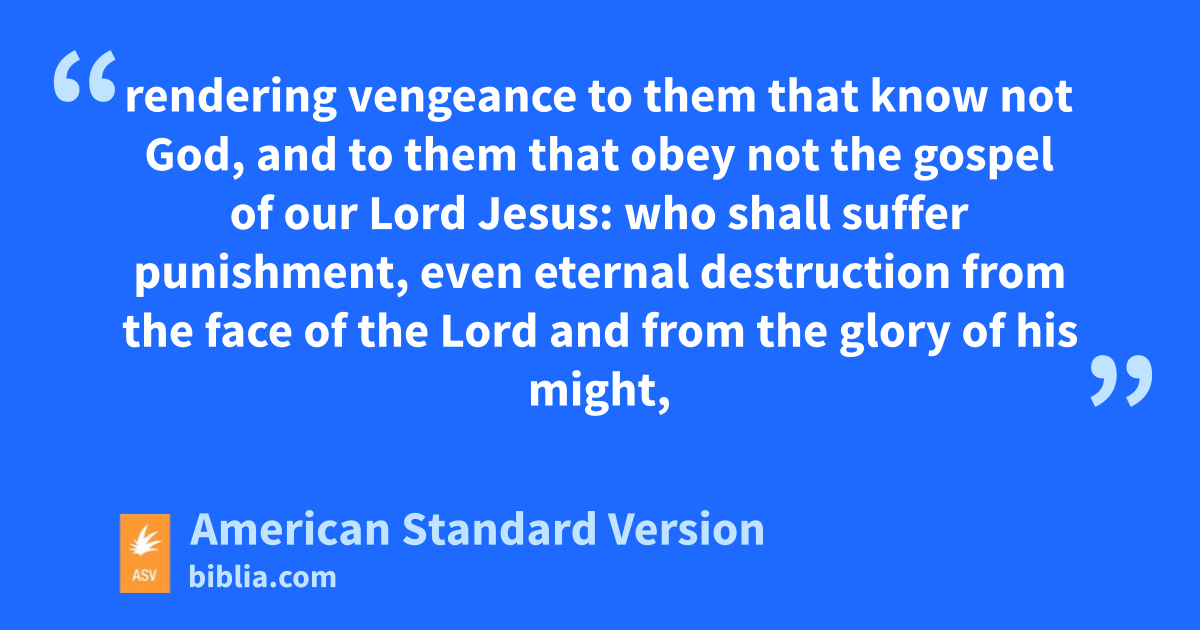 3We are bound to give thanks to God always for you, brethren, even as it is meet, for that your faith groweth exceedingly, and the love of each one of you all toward one another aboundeth; 4so that we ourselves glory in you in the churches of God for your patience and faith in all your persecutions and in the afflictions which ye endure; 5which is a manifest token of the righteous judgment of God; to the end that ye may be counted worthy of the kingdom of God, for which ye also suffer: 6if so be that it is a righteous thing with God to recompense affliction to them that afflict you, 7and to you that are afflicted rest with us, at the revelation of the Lord Jesus from heaven with the angels of his power in flaming fire, 8rendering vengeance to them that know not God, and to them that obey not the gospel of our Lord Jesus: 9who shall suffer punishment, even eternal destruction from the face of the Lord and from the glory of his might, 10when he shall come to be glorified in his saints, and to be marvelled at in all them that believed (because our testimony unto you was believed) in that day. 11To which end we also pray always for you, that our God may count you worthy of your calling, and fulfil every desire of goodness and every work of faith, with power; 12that the name of our Lord Jesus may be glorified in you, and ye in him, according to the grace of our God and the Lord Jesus Christ.