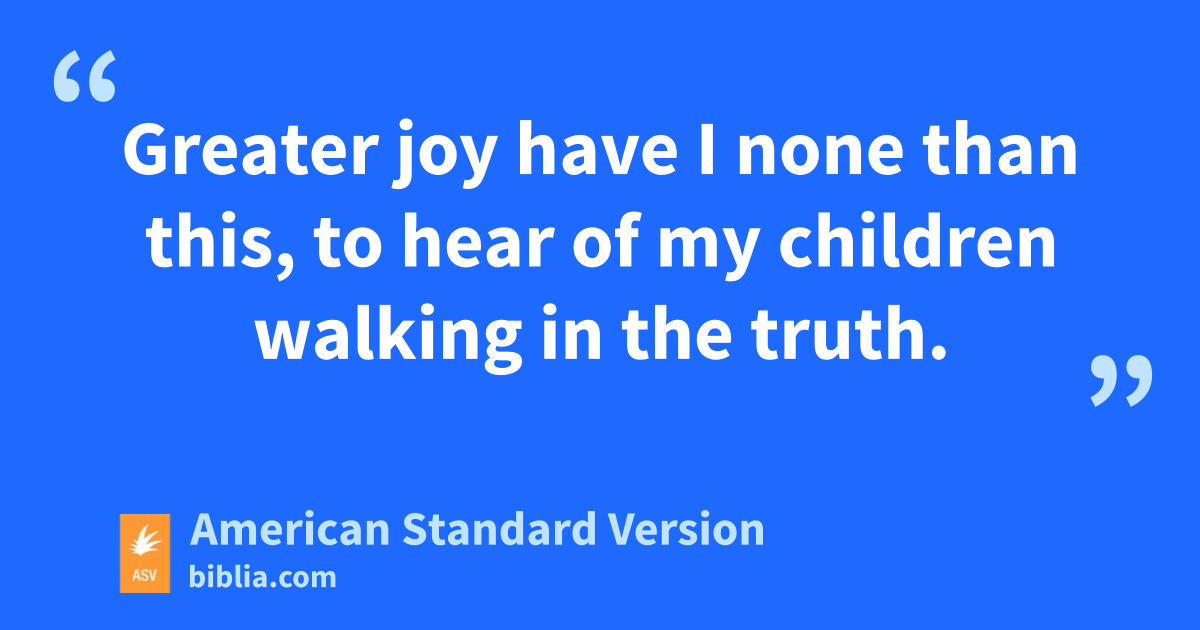 1The elder unto Gaius the beloved, whom I love in truth. 2Beloved, I pray that in all things thou mayest prosper and be in health, even as thy soul prospereth. 3For I rejoiced greatly, when brethren came and bare witness unto thy truth, even as thou walkest in truth. 4Greater joy have I none than this, to hear of my children walking in the truth.