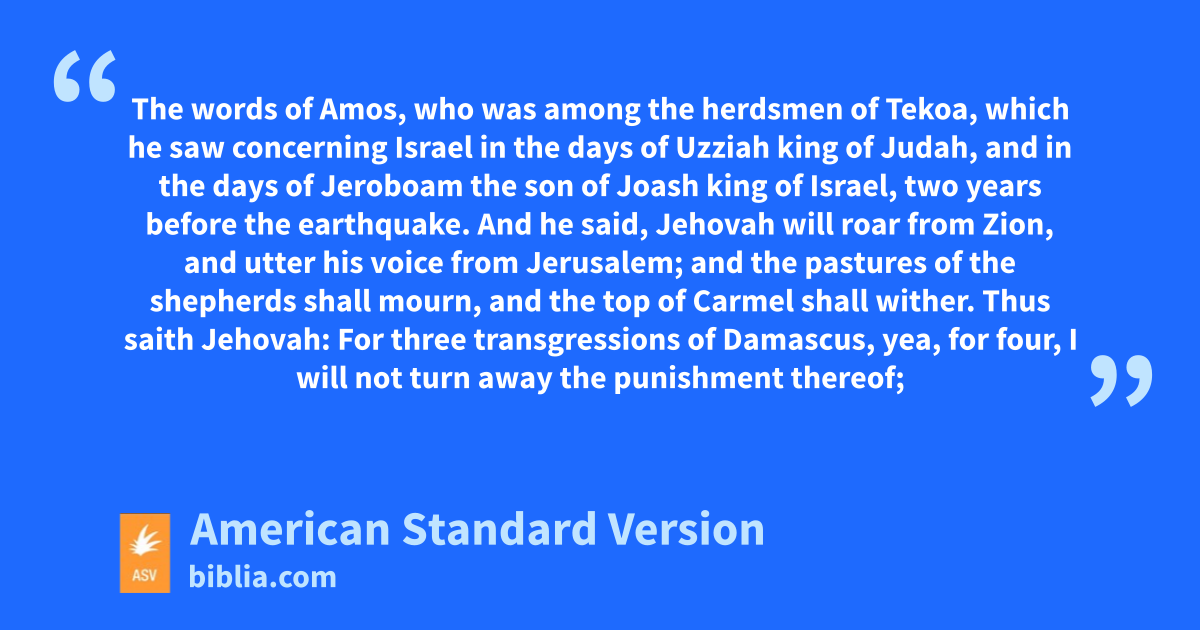 1 The words of Amos, who was among the herdsmen of Tekoa, which he saw concerning Israel in the days of Uzziah king of Judah, and in the days of Jeroboam the son of Joash king of Israel, two years before the earthquake.