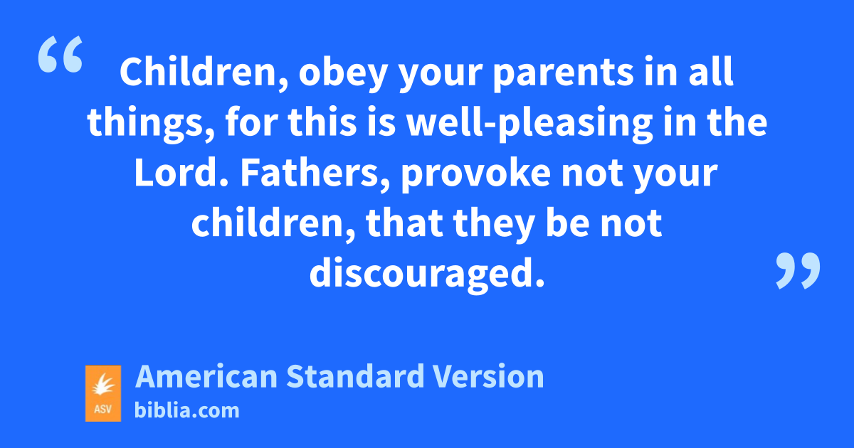 18Wives, be in subjection to your husbands, as is fitting in the Lord. 19Husbands, love your wives, and be not bitter against them. 20Children, obey your parents in all things, for this is well-pleasing in the Lord. 21Fathers, provoke not your children, that they be not discouraged. 22Servants, obey in all things them that are your masters according to the flesh; not with eye-service, as men-pleasers, but in singleness of heart, fearing the Lord: 23whatsoever ye do, work heartily, as unto the Lord, and not unto men; 24knowing that from the Lord ye shall receive the recompense of the inheritance: ye serve the Lord Christ. 25For he that doeth wrong shall receive again for the wrong that he hath done: and there is no respect of persons.