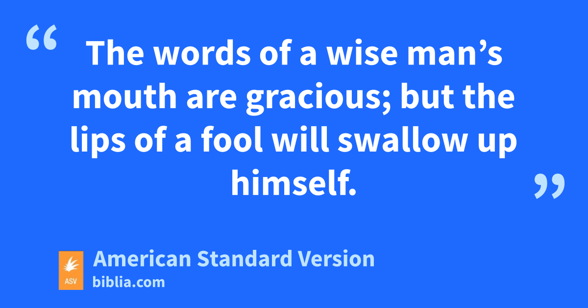 12The words of a wise man’s mouth are gracious; but the lips of a fool will swallow up himself. 13The beginning of the words of his mouth is foolishness; and the end of his talk is mischievous madness. 14A fool also multiplieth words: yet man knoweth not what shall be; and that which shall be after him, who can tell him? 15The labor of fools wearieth every one of them; for he knoweth not how to go to the city.