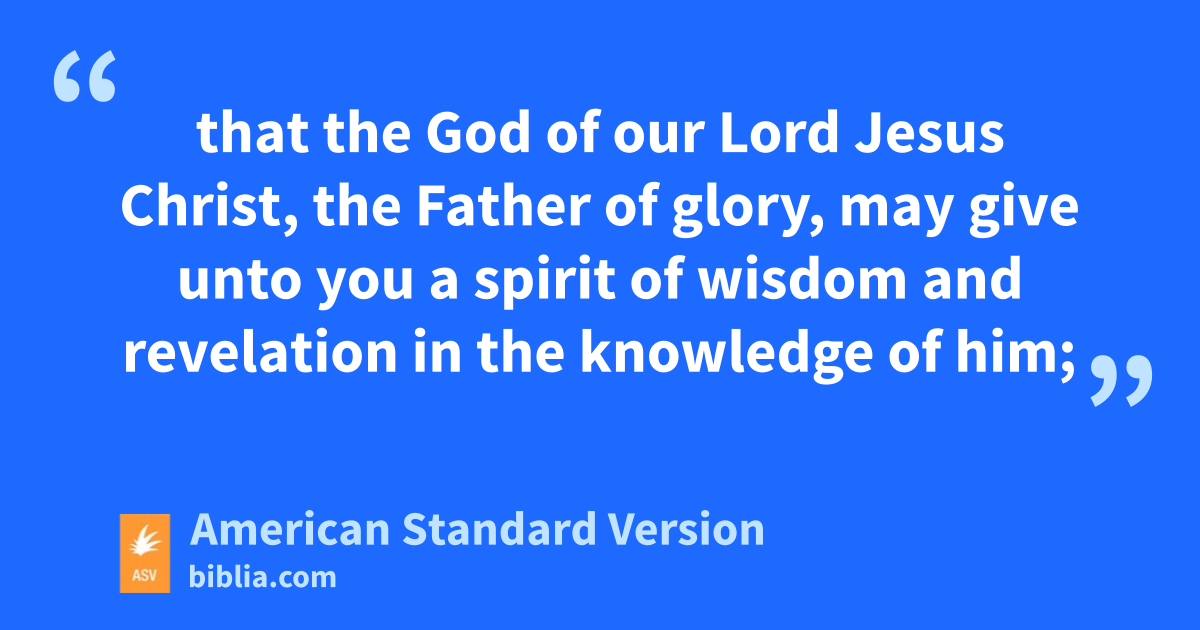 15For this cause I also, having heard of the faith in the Lord Jesus which is among you, and the love which ye show toward all the saints, 16cease not to give thanks for you, making mention of you in my prayers; 17that the God of our Lord Jesus Christ, the Father of glory, may give unto you a spirit of wisdom and revelation in the knowledge of him; 18having the eyes of your heart enlightened, that ye may know what is the hope of his calling, what the riches of the glory of his inheritance in the saints, 19and what the exceeding greatness of his power to us-ward who believe, according to that working of the strength of his might 20which he wrought in Christ, when he raised him from the dead, and made him to sit at his right hand in the heavenly places, 21far above all rule, and authority, and power, and dominion, and every name that is named, not only in this world, but also in that which is to come: 22and he put all things in subjection under his feet, and gave him to be head over all things to the church, 23which is his body, the fulness of him that filleth all in all.