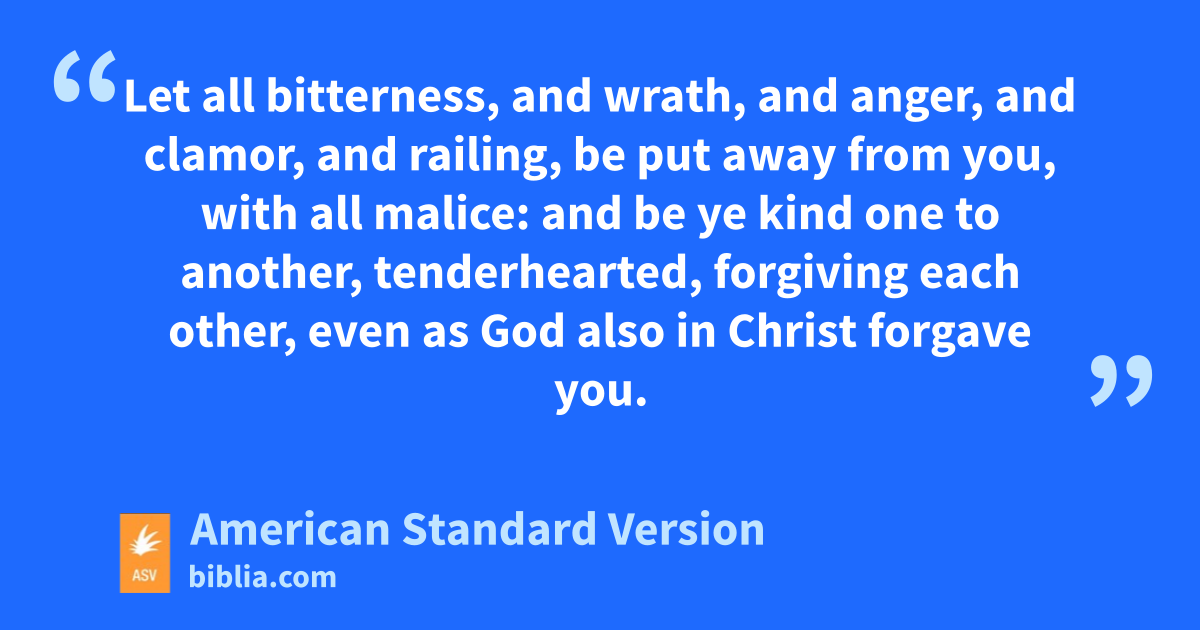 25Wherefore, putting away falsehood, speak ye truth each one with his neighbor: for we are members one of another. 26Be ye angry, and sin not: let not the sun go down upon your wrath: 27neither give place to the devil. 28Let him that stole steal no more: but rather let him labor, working with his hands the thing that is good, that he may have whereof to give to him that hath need. 29Let no corrupt speech proceed out of your mouth, but such as is good for edifying as the need may be, that it may give grace to them that hear. 30And grieve not the Holy Spirit of God, in whom ye were sealed unto the day of redemption. 31Let all bitterness, and wrath, and anger, and clamor, and railing, be put away from you, with all malice: 32and be ye kind one to another, tenderhearted, forgiving each other, even as God also in Christ forgave you.